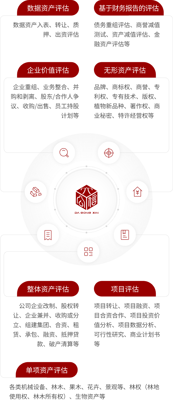债务重组评估、商誉减值测试、资产减值评估、金融资产评估等