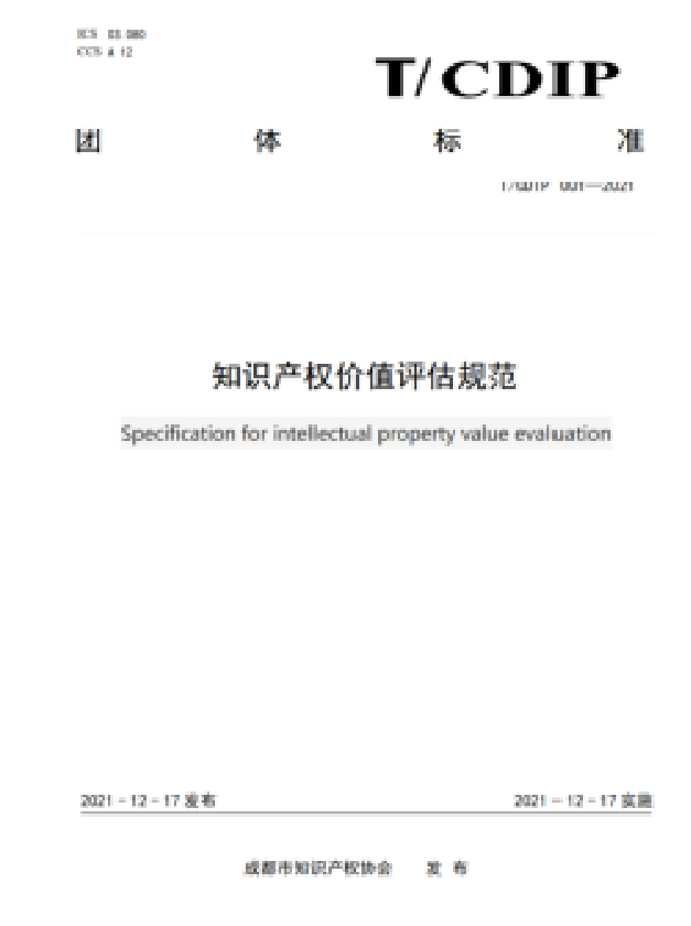 《知识产权价值评估规范》(T/CDIP 001—2021)