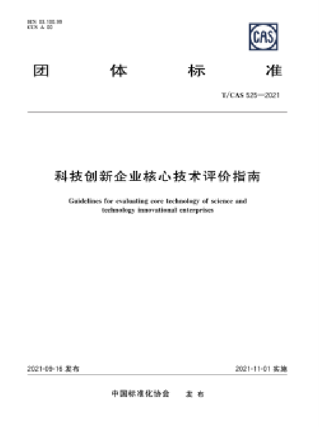 《科技创新企业核心技术评价指南》(T/CAS 525-2021)